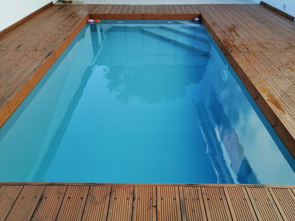 - Reinforced PVC membrane It is suitable for all shapes and sizes of pools. . Unlike Liner, which comes in the form of a custom-made pool bag, while the reinforced mesh is cut and vulcanized on site. Thus, they can be adapted to all types of pool: free-form, lap, infinity pool, etc.